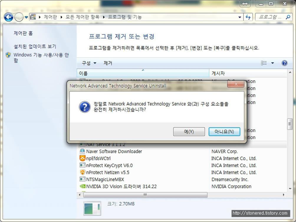 N.A.T Service 3.5.4.14 (간혹 NET Service 3.5.4.14로 검색하시는 분도 계시던데 N.A.T Service예요!)를 프로그램 제거에서 삭제했더라도.