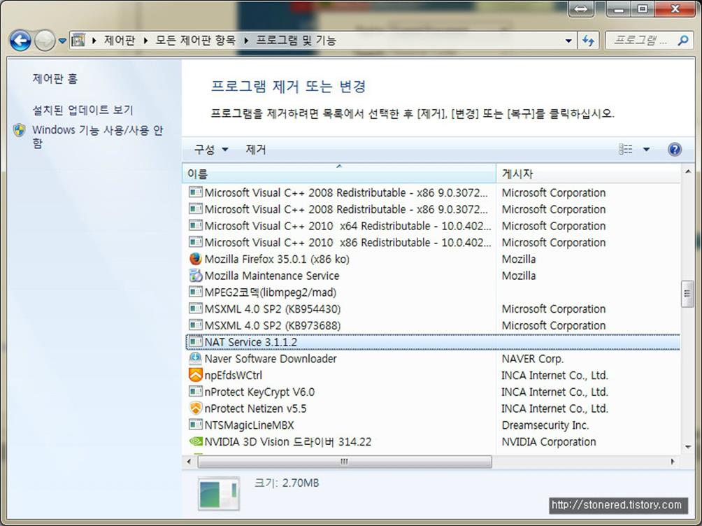 이 글을 쓰려고 회사의 제 컴퓨터의 "프로그램 제거 또는 변경"을 열어보니 "NAT Service 3.1.1.2"가 보이네요.