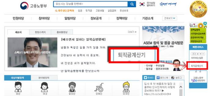 주의: 예전에는 '고용노동부 e자가진단'이라는 별도의 사이트에서 퇴직금을 계산할 수 있었으나, 현재는 고용노동부의 메인 홈페이지에서 이용할 수 있습니다.