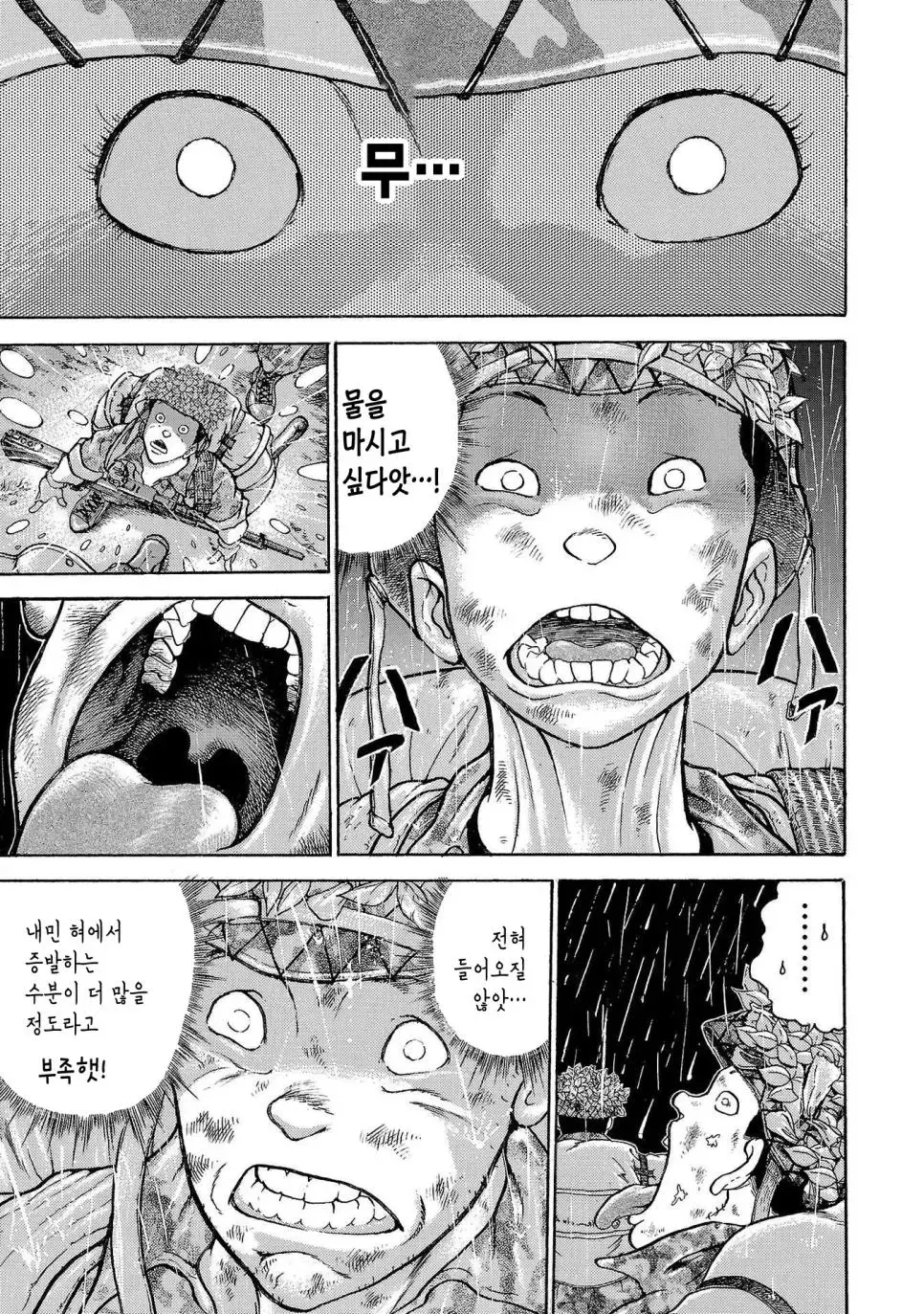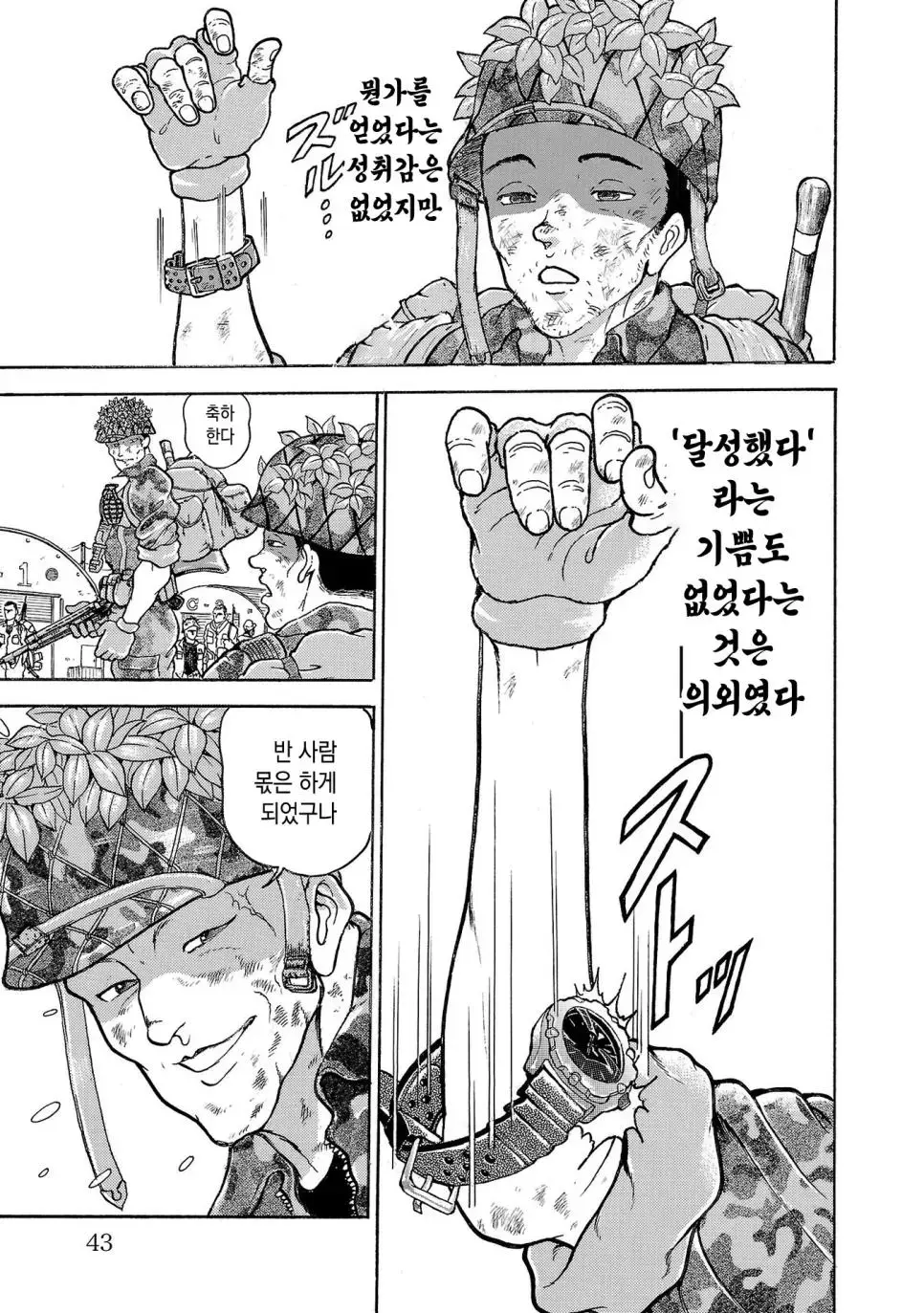 바키 작가는 이번 작품에서도 그의 특유의 사실적이고 디테일한 그림체로 군인들의 표정, 군장의 무게, 그리고 힘든 여정을 리얼하게 표현했습니다. 또한, 강렬한 스토리텔링을 통해 군인들의 심리적 변화와 내면의 갈등을 세밀하게 그려내며, 독자들이 캐릭터들과 깊이 공감할 수 있도록 했습니다.