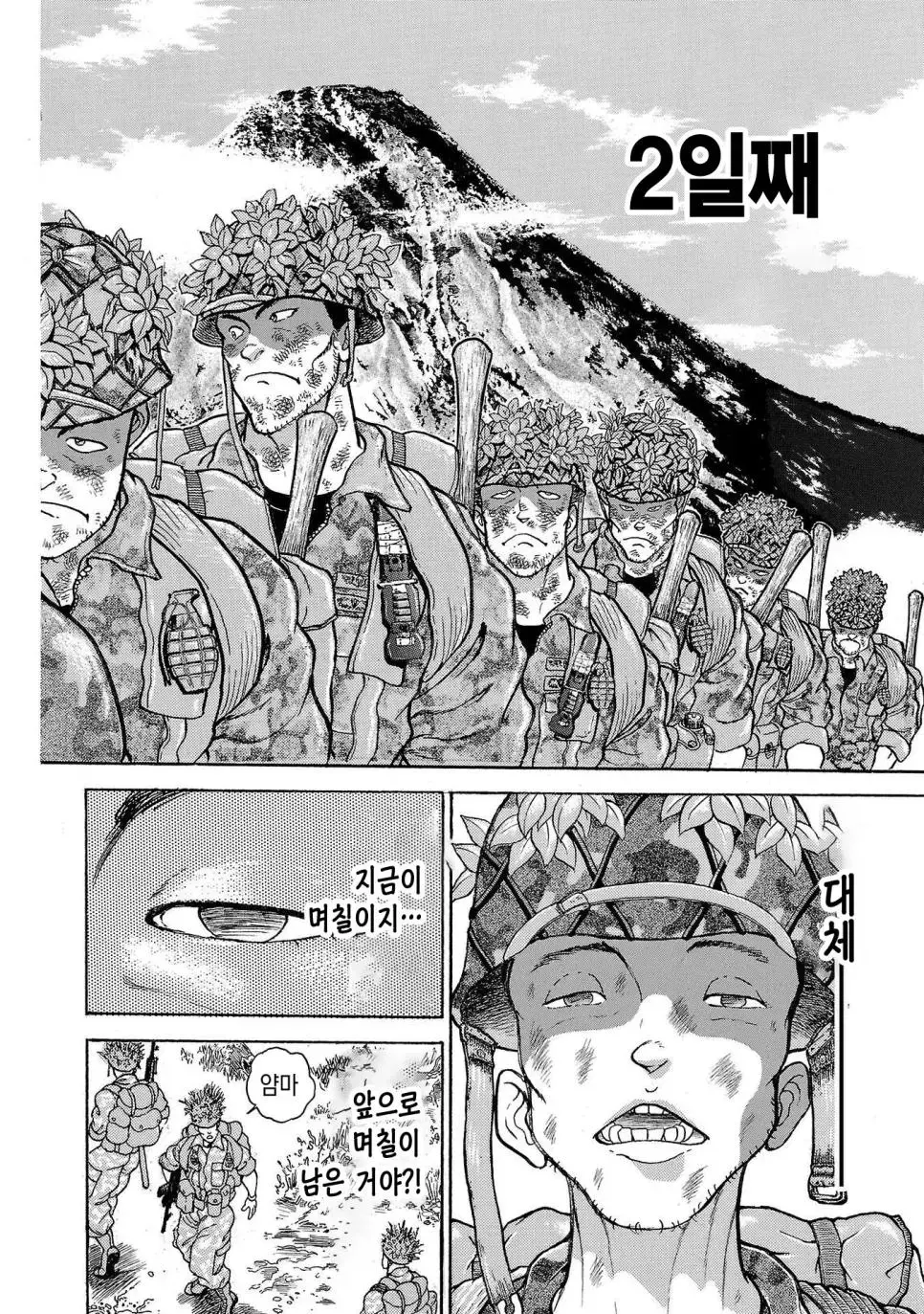 바키 작가가 그린 일본 육상자위대 제1공정단 30KG 군장의 100Km 행군 만화 2만보 2박3일