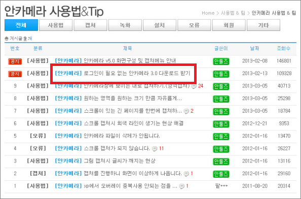 홈페이지 우측 다운로드 메뉴에서 안카메라 다운로드를 클릭하고 들어가세요.