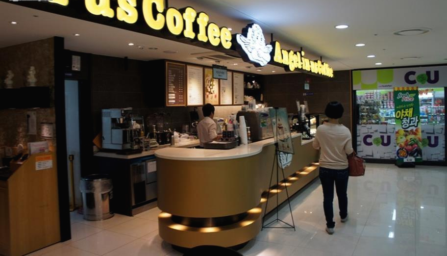 이번에 을왕리 골든스카이 리조트에 놀러가서 로비층에 있는 엔젤리너스 커피숍에서 바꿔 먹었다.