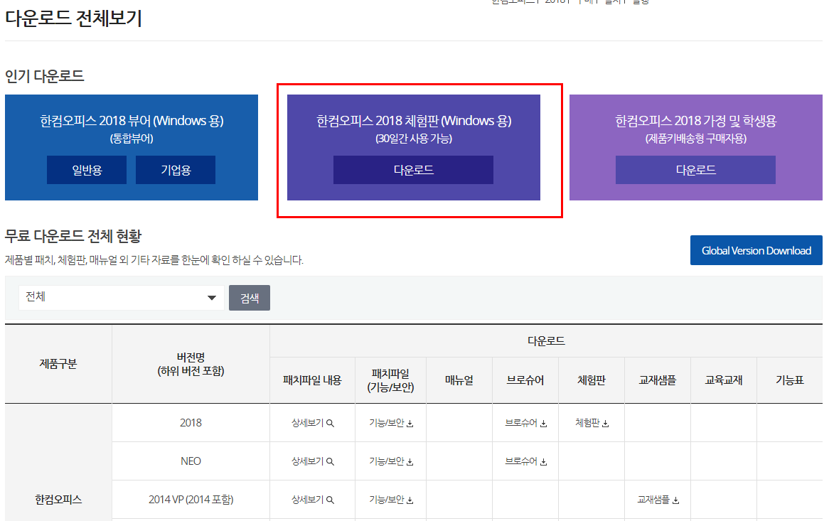 한글 2019 무료설치 - 다운로드 한쇼, 한셀, 한PDF 한컴오피스 2018 체험판