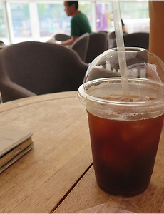아람누리1 고양시 아람누리 아름극장 커피숍 ARAMTHRE 고양시 아람누리 아름극장 1층 로비에 있는 아람카페?이름은 정확히 기억 안난다. ARAMTHRE인듯.일단 아람극장 안에서 유일하게 뭔가 먹을 수 있는 것을 파는 곳이다.테이블은 이렇게 놓여 있고, 아람누리 광장을 내다볼 수 있는 전망이 좋다.하지만 카운터까지 이~~만큼 거리가 떨어져 있다.음료(커피 등등)와 스콘과 샌드위치 같은 간단한 간식거리를 판매한다.아이스 아메리카노 한잔과 스콘을 구입했다. 가격은 6천원. 아이스 아메리카노 가격 3500원. 스콘 2500원.스콘의 크기는 작은데 맛은 있다.창밖으로 아람누리도서관이 보인다. 아람누리 아람극장의 로비 모습. 2015. 7. 24. 이전 1 다음
